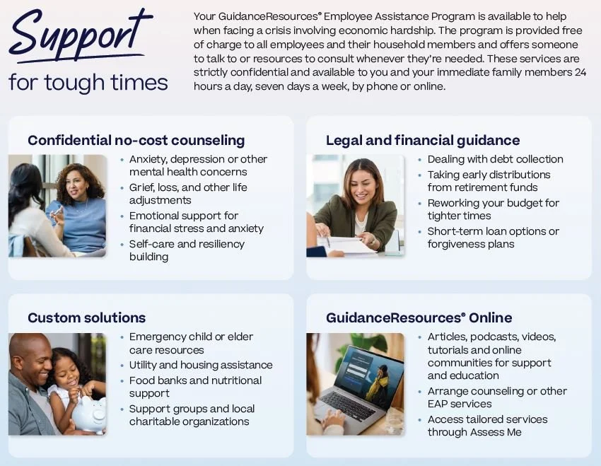 Financial Resources: ComPsych’s financial experts can assist with a wide range of issues.